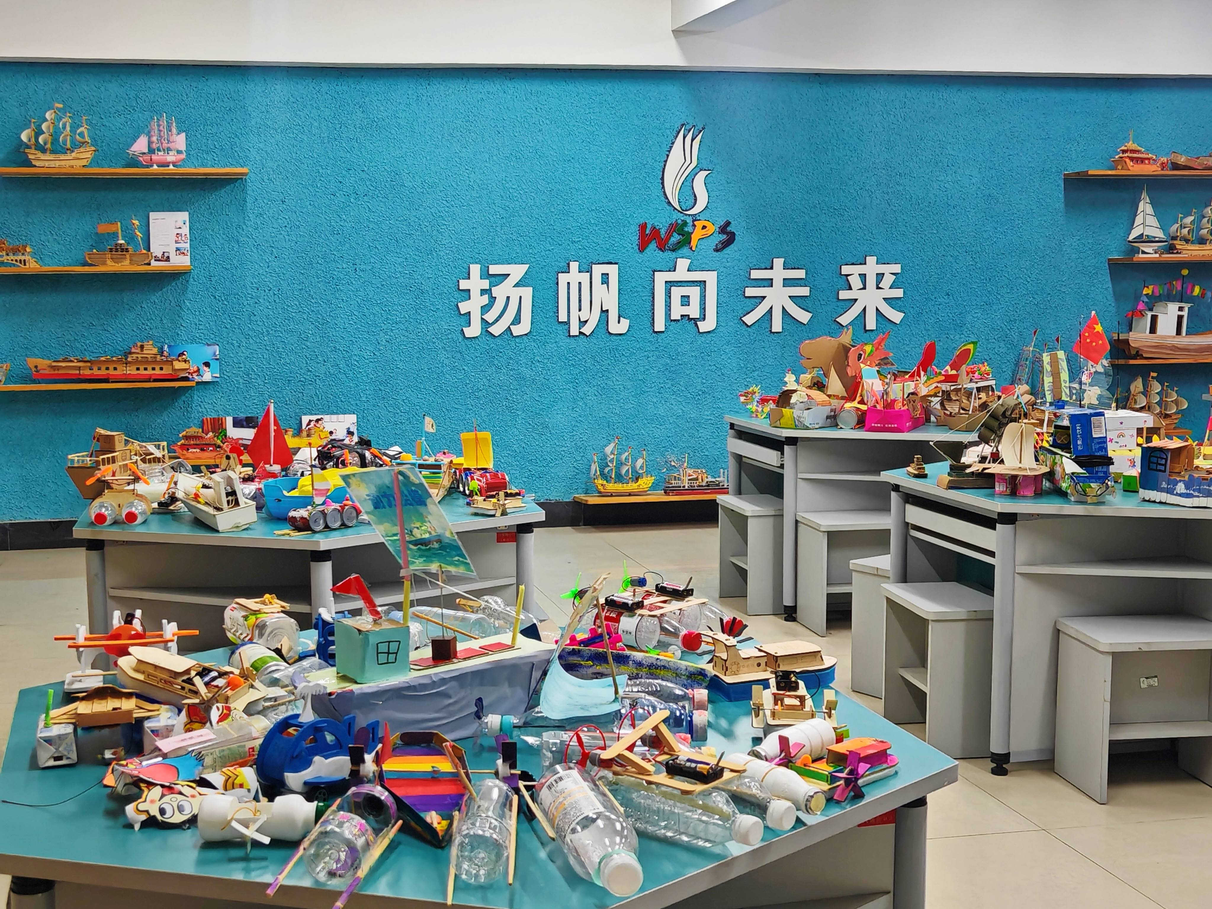 资源循环利用成效显著:学生累计利用贝壳、雪糕棍、快递盒等废弃物制作贝雕艺术品、船模超千件,校园可回收物(纸张、塑料、金属等)利用率提升95%,减少固体废弃物排放约2吨/年。