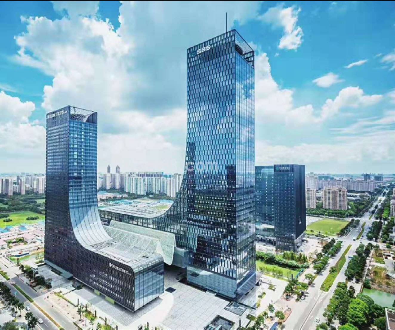 项目名称:苏州现代传媒广场。苏州现代传媒广场总建筑面积32.8万平方米,由两栋L型超高层塔楼构成,其中南侧写字楼共50层,建筑高度达214.8米;北侧酒店楼为43层,高度164米。