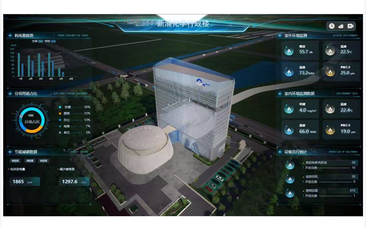 新浦化学行政楼作为甲方自持型写字楼,总建筑面积约4.29万平方米,办公使用率达100%。为践行绿色低碳运营理念,万物梁行物业团队以系统性思维推进多项节能改造工作。