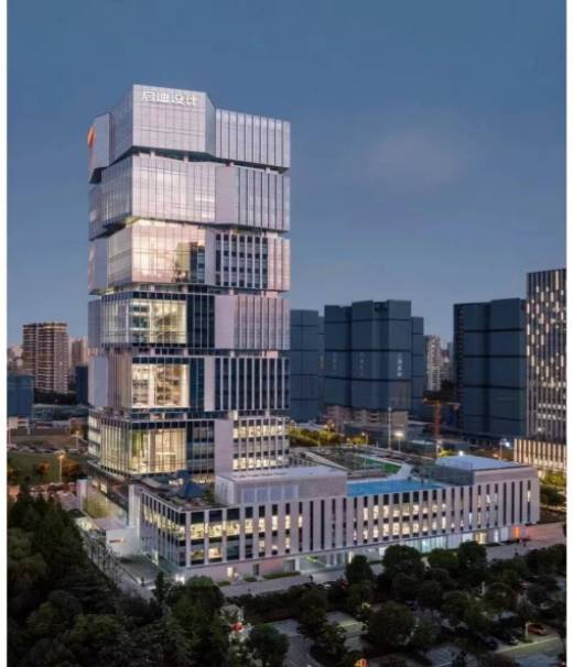 苏州启迪设计大厦是启迪设计集团的新总部大楼,位于苏州工业园区湖东CBD,北侧紧邻苏州现代传媒大厦,东向可眺望东方之门,融合传统苏州意象与现代绿色理念,是江苏省高品质绿色建筑示范项目。