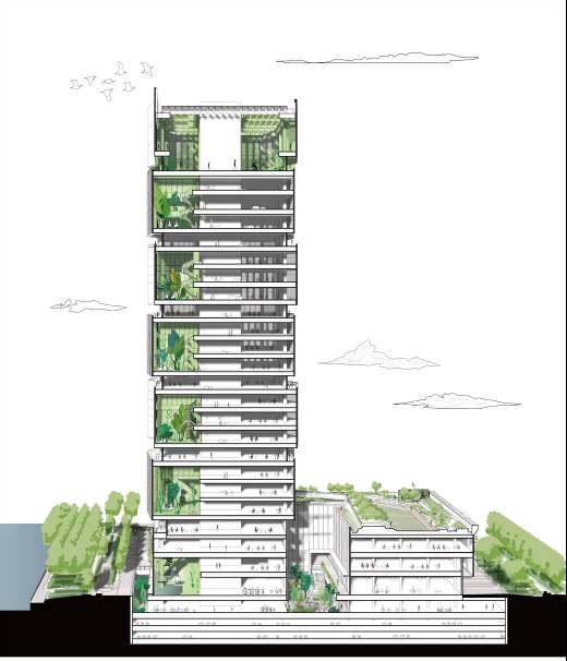 indoor natural lighting, and sets up vertical courtyards and aerial corridors